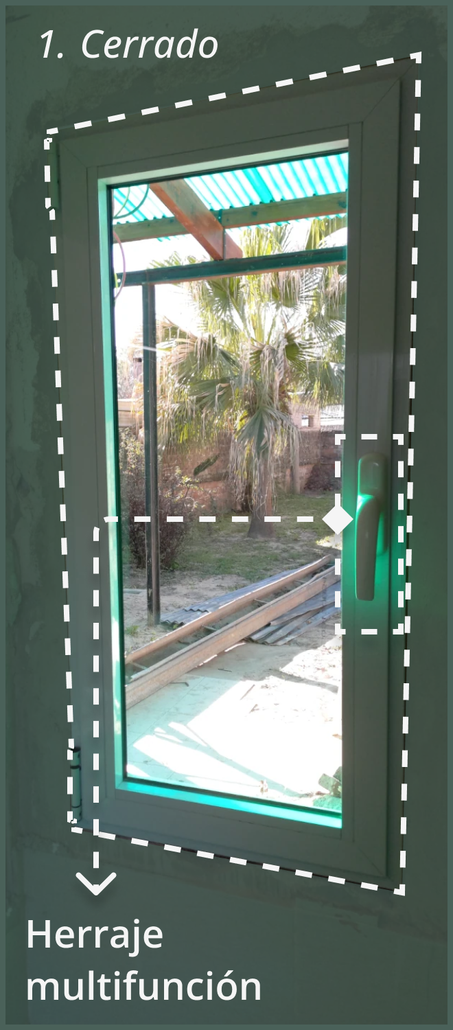 El sístema oscilobatiente se logra con un mecanismo multifuncional que combina ventanas abatibles de giro vertical y horizontal.