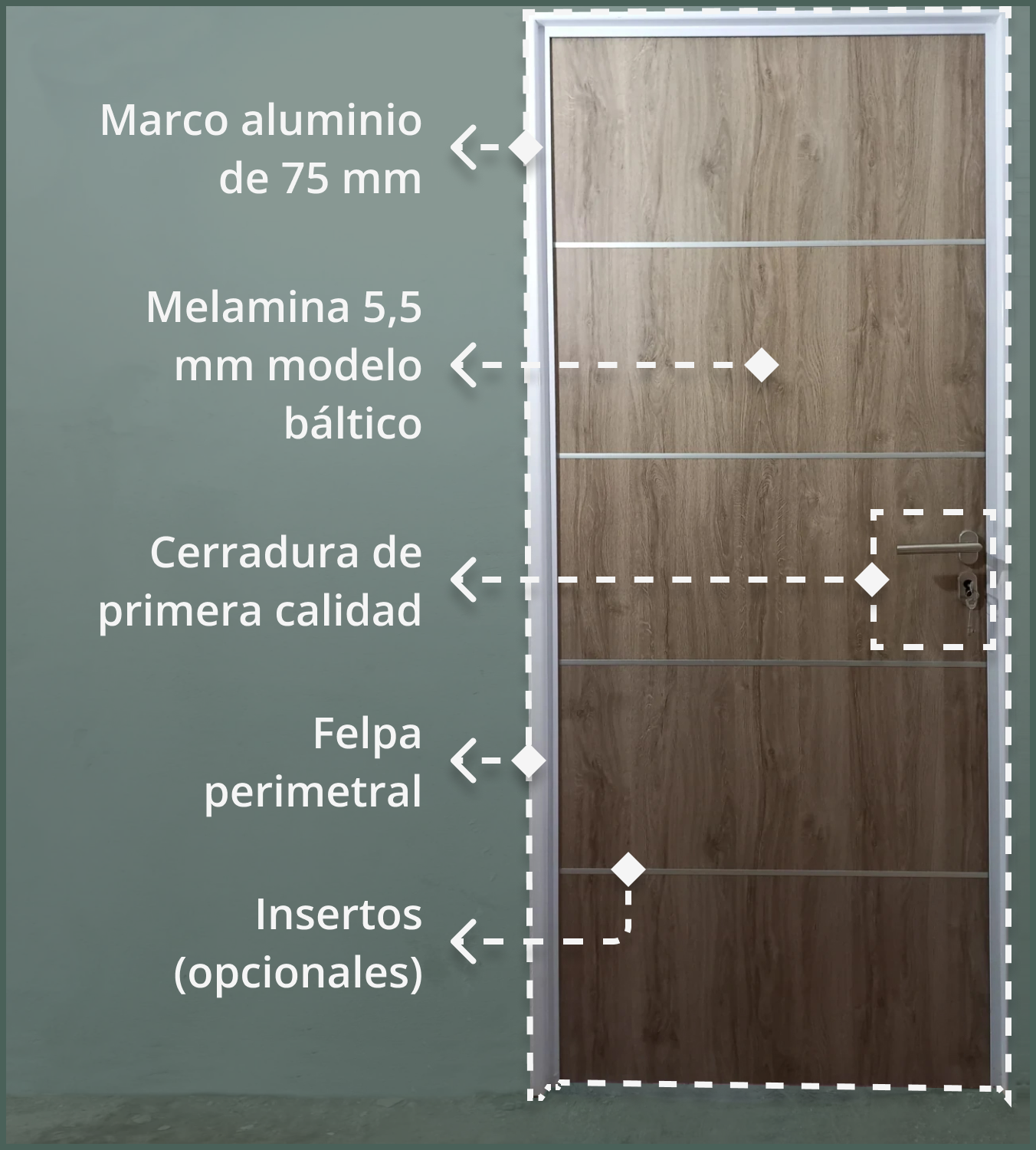 Puerta serie premium: máxima expresión de diseño y calidad con barral acero inoxidable.