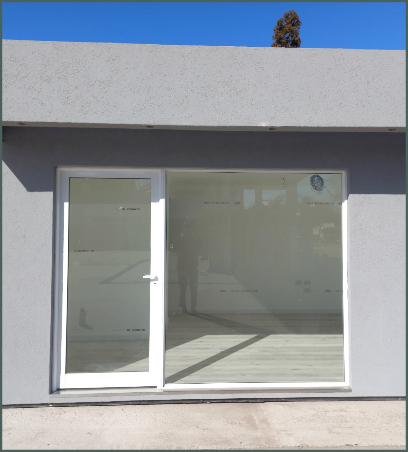 Ideal para negocios. Puerta vidriada acoplada a paño fijo con vidrio blindex 3+3.