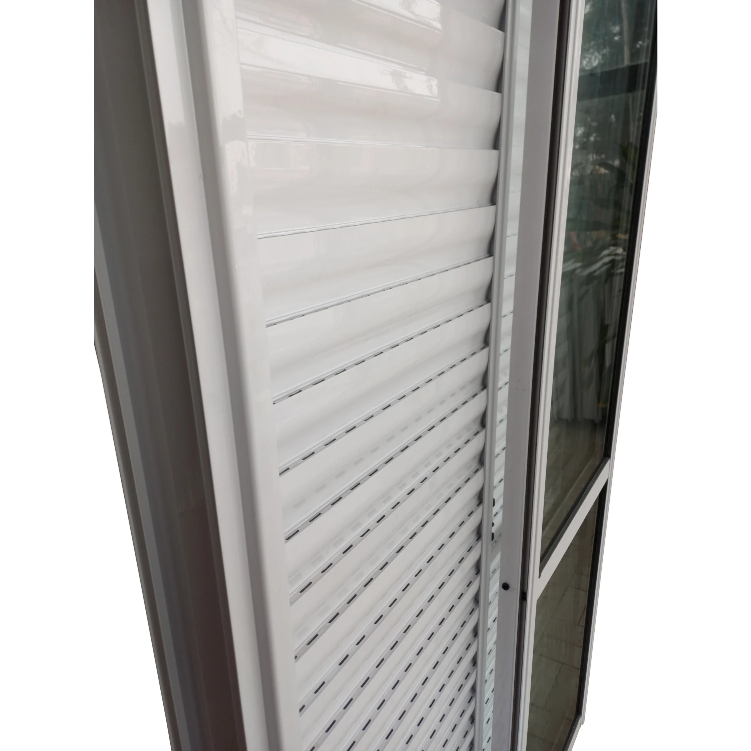 MARCO UNIFICADO CON HOJAS CORREDIZAS INTERIORES DE VIDRIO Y EXTERIORES DE CELOSÍA TROQUELADA